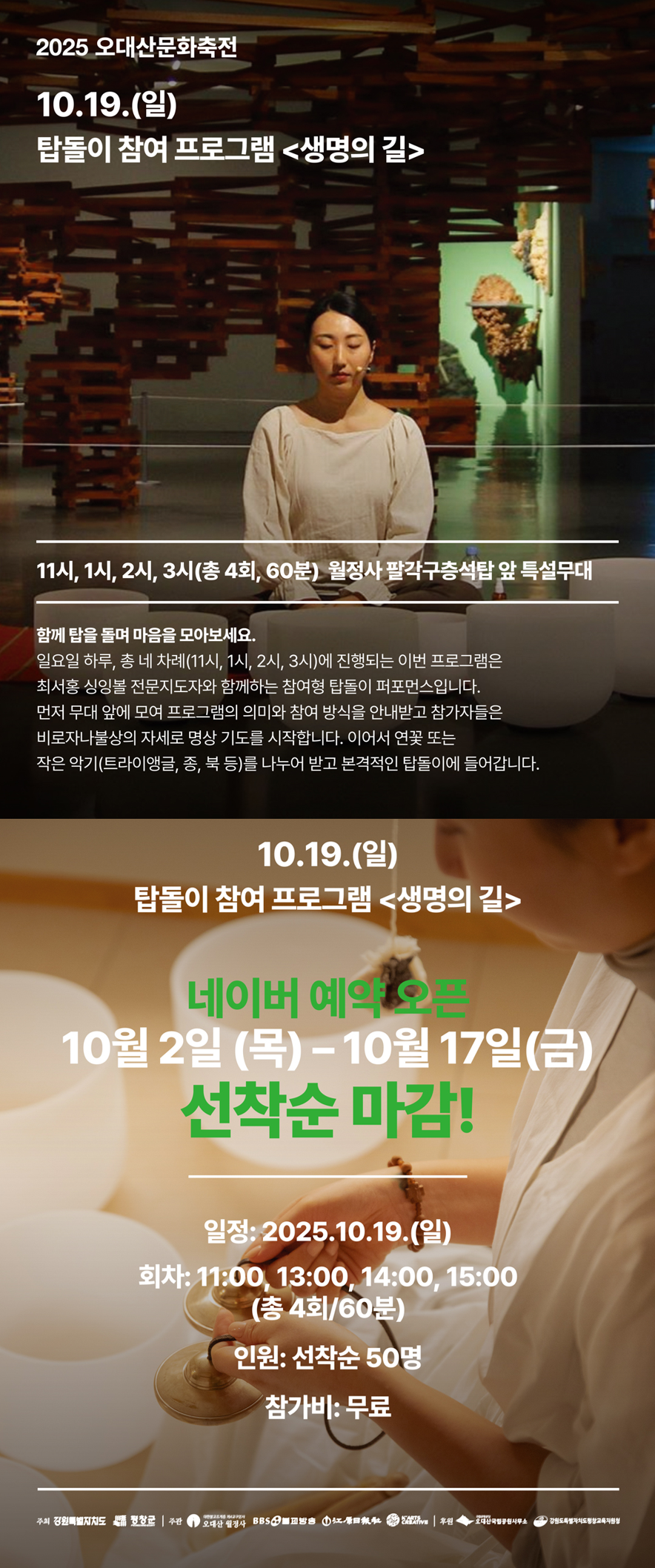 탑돌이 참여 프로그램 <생명의 길> - 네이버 예약 오픈 - 선착순 마감!! 페이지 정보 작성일2025.10.02 조회11회 본문 탑돌이 참여 프로그램 <생명의 길> 예약 [바로가기] ▶ 다음글 목록