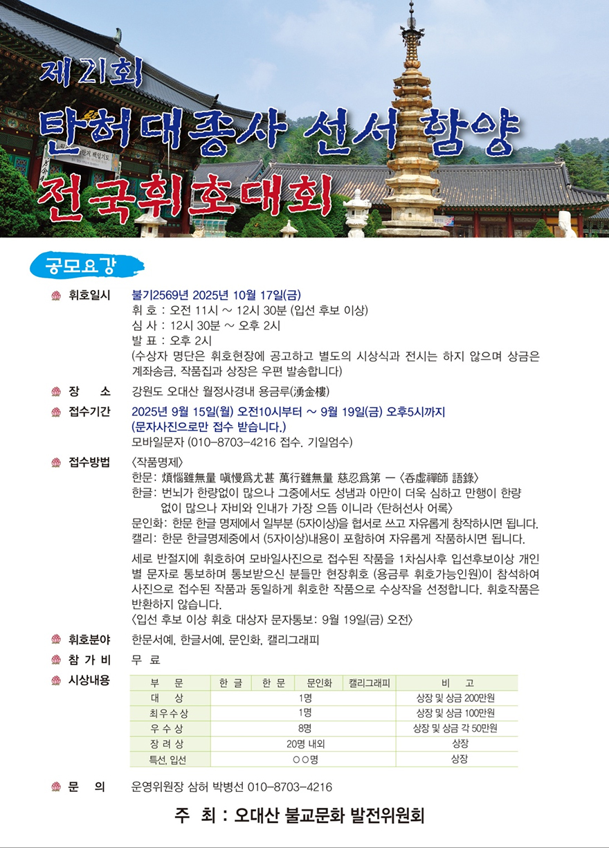 제21회 탄허대종사 선서 함양 전국회호대회 > 공지사항